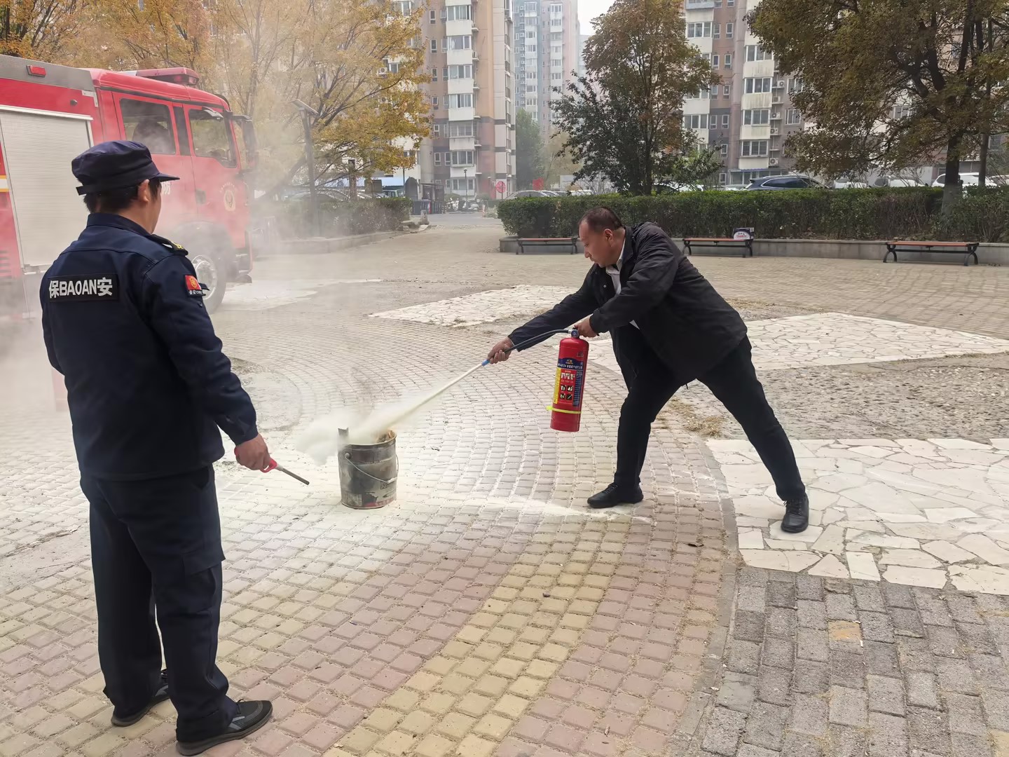 实战:各项目消防演练掠影 除了知识普及,将理论转化为应对火灾的实际能力更为关键,北京建工物业多个项目同步组织了消防安全讲座及演练活动。 通过模拟火情、应急疏散、灭火器实操等环节,演练有效锤炼了团队的应急响应与协同作战能力,确保在真正面对险情时能够做到冷静、有序、高效处置。